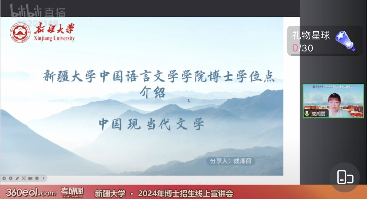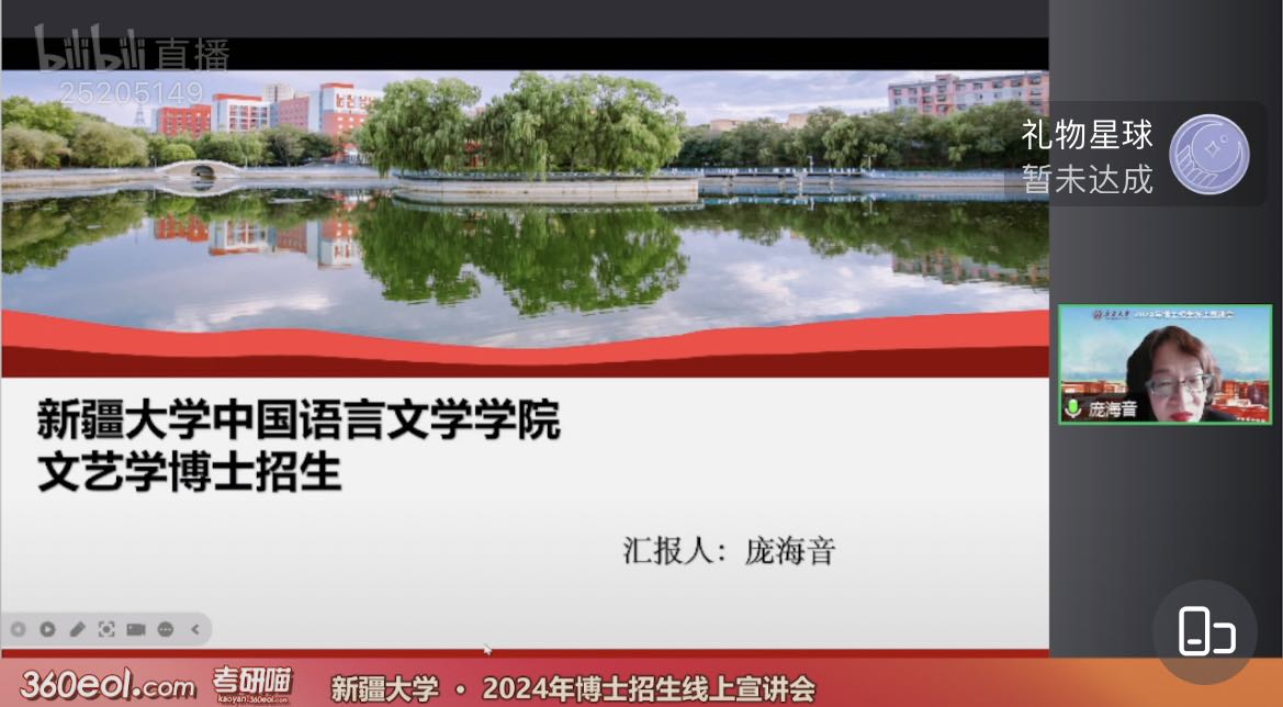 中国语言文学学科及各二级学科方向招生情况;朱贺琴教授结合自身指导博士生经验,分享学院在博士生研究生指导等方面的特色与亮点;庞海音教授与成湘丽教授分别就文艺学专业和中国现当代文学专业师资力量、课程设置、科研条件提供等进行介绍;武汉大学援疆教授、学院副院长就自己入职新大后的所见所闻,向考生和家长予以介绍,老师们的分享让考生和家长更加深入地了解小说狂人